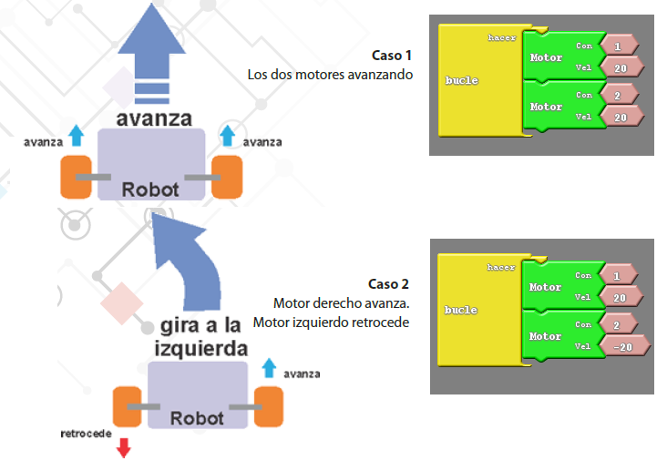 - Para lograr que las ruedas tengan diferentes velocidades, ¿Qué elemento del bloque Motor se debe modicar? ¿Avanzará en línea recta en este caso?