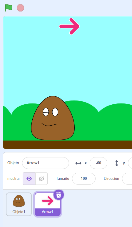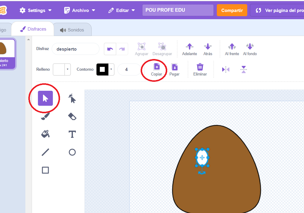 para comenzar vamos a crear el POU, eliminamos el gato de Scratch y ponemos pintar para hacer nuestro POU.