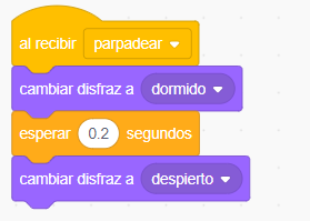 Y ahora, por supuesto, para parpadear cambiamos de disfraz ojo-cerrado , ojo abierto
