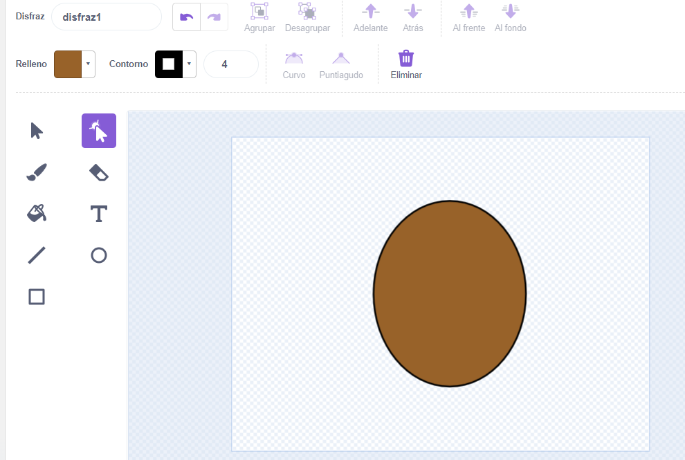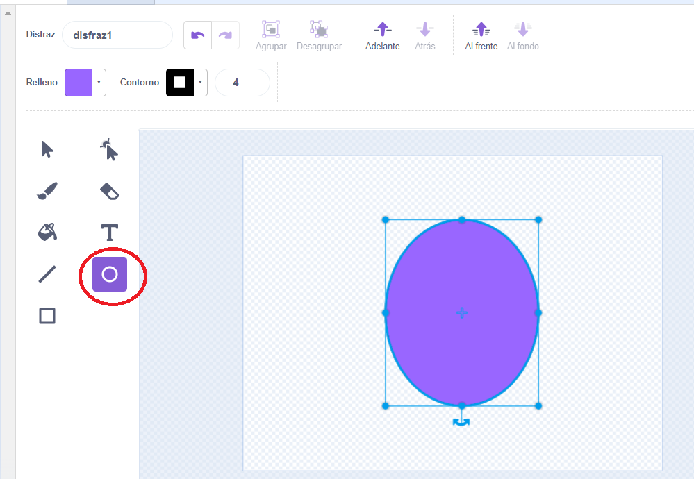 Hacemos un círculo con la herramienta, y le ponemos el color que queremos que tenga nuestra mascota