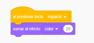 Vamos a hacer que cambie de color al presionar la tecla espacio. Esto es muy sencillo, sólo tenemos que hacer lo siguiente: