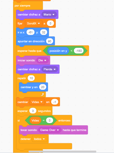 Para programar las vidas, tendremos que crear una variable nueva (Vidas), la que se programará agregando algunos bloques en el código que hicimos recién.