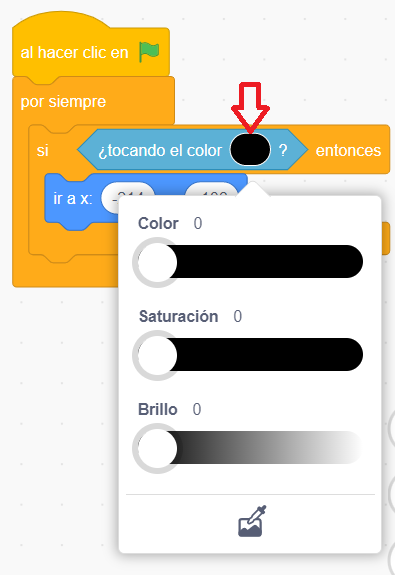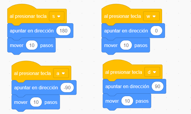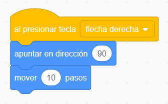 2) Para mover utilizamos el bloque "Al presionar flecha derecha".