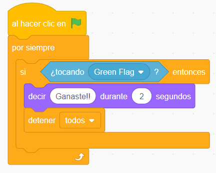 Para indicar el final del juego, tenemos que detectar cuando el auto toca la bandera verde o roja