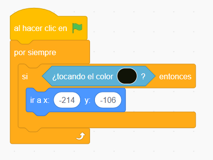 Para eso utilizamos un para siempre, y un si entonces. Los valores de la posición inicial son los mismos que usamos en el punto 1.