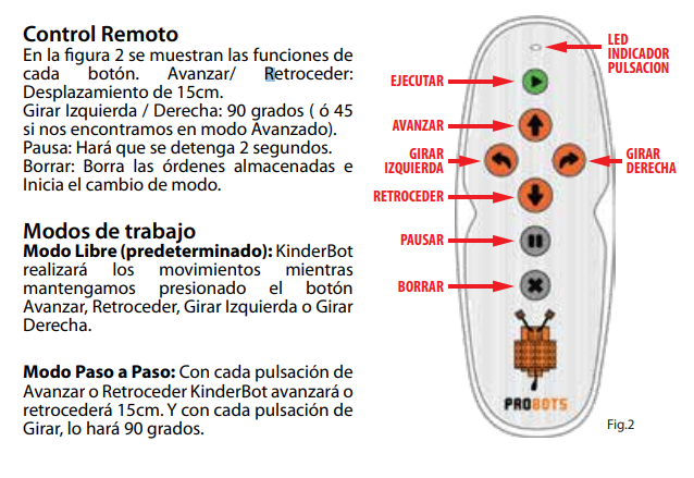 Manual de uso original del Kinderbot: modos, control remoto, primeros pasos