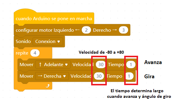 Existen dos bloques que permiten mover el robot, que tienen distintos usos: