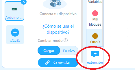 Descargar la extensión OttoRuedas del repositorio mBlock :