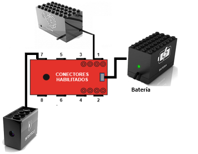 Conectar el motor en CON1 y el sensor ultrasónico en CON7 del Ladrillo Inteligente «R8»