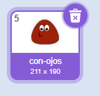 Creamos un nuevo disfraz de POU, al que le agregaremos las pupilas, y le pondremos el nombre "con-ojos"