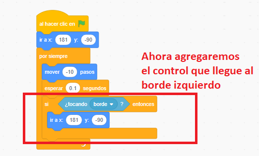 5. Controlar que los Cactus lleguen al borde izquierda y vuelvan a empezar