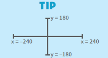 Recordar: la pantalla ubica los objetos con dos valores X e Y , que van de -240 a +240 en X ó de -180 a + 180 en Y