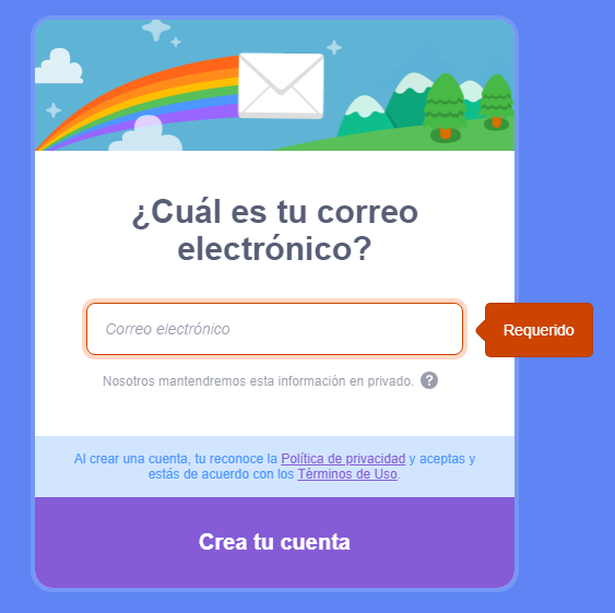 Por último cargar un correo electrónico, si no tenés pedile a tus padres o profesores.