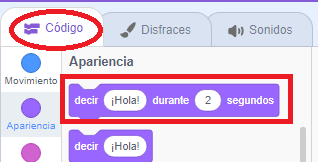 Por último, para empezar a hacer el diálogo utilizaremos el siguiente bloque del grupo Apariencia: