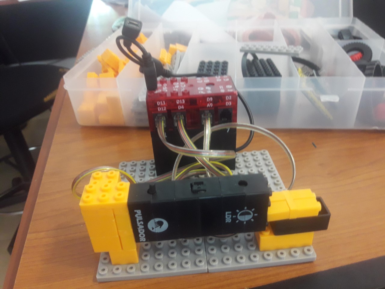 es un interruptor o un botón que envía una señal cuando se lo presiona. Cuando se acciona emite un valor «Uno» o «Alto», de lo contrario emite un valor «Cero» o «Bajo».Sensor de luz (LDR): es un Sensor Analógico que nos permite detectar y medir la intensidad de luz del ambiente. El mismo es muy pequeño y sencillo de utilizar. Se trata de una foto resistencia (LD