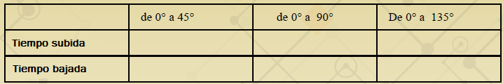 - Completar la siguiente tabla para terminar de entender velocidad y ángulos.