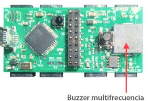 PARLANTE / BUZZER:  es un actuador que permite reproducir sonidos a diferentes frecuencias y de esta manera podemos crear melodías. Este componente se encuentra integrado al ladrillo inteligente «R8» a través del Pin digital 10. Es ideal para darle sonidos a nuestros robots.