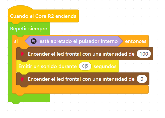 Conectar el pulsador en CON1 del Ladrillo Inteligente «R8» y el LED al conector CON4